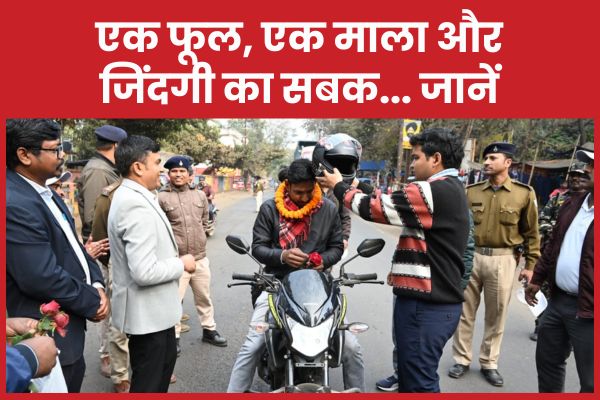 Pakur (Jaydev Kumar) : सिद्धू कान्हू पार्क के पास रविवार की सुबह कुछ अलग थी। चौराहे पर खड़े पुलिसकर्मी न तो सीटी बजा रहे थे और न ही चालान की रसीद थमा रहे थे। उनके हाथों में गुलाब और माला थी। राहगीर ठिठक रहे थे, मुस्कुरा रहे थे और सवाल पूछ रहे थे कि आज माजरा क्या है। यहीं से शुरू होती है पाकुड़ की वह कहानी, जहां सड़क सुरक्षा को डर नहीं, समझ और संवेदना से जोड़ा गया।