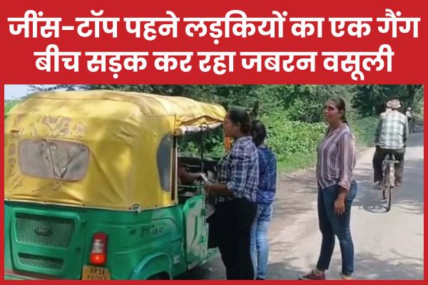 जींस-टॉप पहने लड़कियों का एक गैंग बीच सड़क कर रहा जबरन वसूली