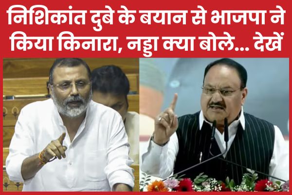 New Delhi : भाजपा ने अपने सांसद निशिकांत दुबे और दिनेश शर्मा द्वारा न्याय पालिका और देश के मुख्य न्यायाधीश को लेकर दिए गए विवादास्पद बयानों से स्पष्ट रूप से दूरी बना ली है। पार्टी अध्यक्ष जेपी नड्डा ने शनिवार देर रात एक्स पर एक पोस्ट जारी कर कहा कि ये दोनों बयान व्यक्तिगत हैं। भाजपा का उनसे कोई संबंध नहीं है और पार्टी ऐसे बयानों का समर्थन नहीं करती है। जेपी नड्डा ने कहा, “भाजपा सांसद निशिकांत दुबे और दिनेश शर्मा के न्यायपालिका एवं देश के चीफ जस्टिस पर दिए गए बयान पूरी तरह से व्यक्तिगत हैं। भारतीय जनता पार्टी न तो इन बयानों से सहमति रखती है और न ही ऐसे किसी भी बयान का समर्थन करती है। पार्टी इन बयानों को स्पष्ट रूप से खारिज करती है।”