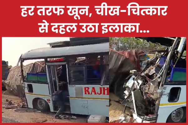 Hazaribagh : हजारीबाग में आज यानी मंगलवार को एक बड़ा हादसा हो गया। NH पर पैसेंजर्स से भरी एक बस और माल लदे एक ट्रक में भयंकर टक्कर हो गयी। टक्कर इतनी जोरदार थी कि ट्रक पलट गया। वहीं, बस की परखच्चे उड़ गये। बस का ड्राइवर सीट और स्टेयरिंग के बीच फंसा रह गया। संभवतः उसकी सासों की डोर टूट चुकी है। वहीं, बस में सफर कर रहे अधिकतर यात्री बेतरह जख्मी हो गये। किसी का माथा फट गया तो किसी का पैर कट गया। किसी का हाथ अलग हो गया तो कोई पूरा लहुलूहान हो गया। हर तरफ खून नजर आ रहा है। टक्कर के बाद जख्मी लोगों की चीख-चित्कार से पूरा इलाका दहल उठा। सूचना स्थानीय पुलिस को दे दी गयी है।