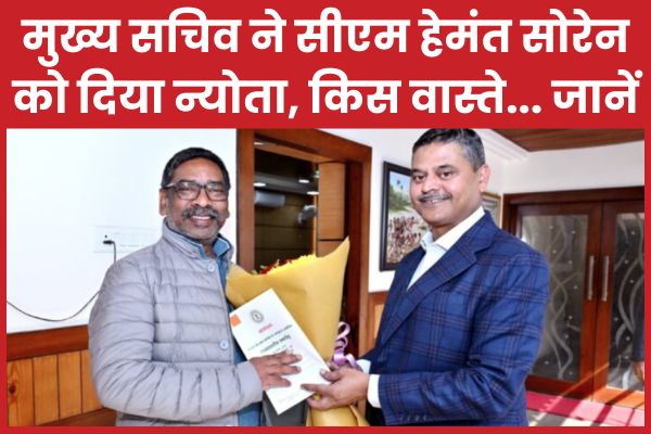 Ranchi : कांके रोड स्थित मुख्यमंत्री आवासीय कार्यालय में मुख्य सचिव अविनाश कुमार ने सीएम हेमंत सोरेन से शिष्टाचार भेंट की। इस अवसर पर मुख्य सचिव ने सीएम को 28 नवंबर 2025 को मोरहाबादी मैदान में आयोजित होने वाले राज्य सरकार की प्रथम वर्षगांठ के राज्यस्तरीय समारोह में शामिल होने हेतु सादर आमंत्रित किया।
