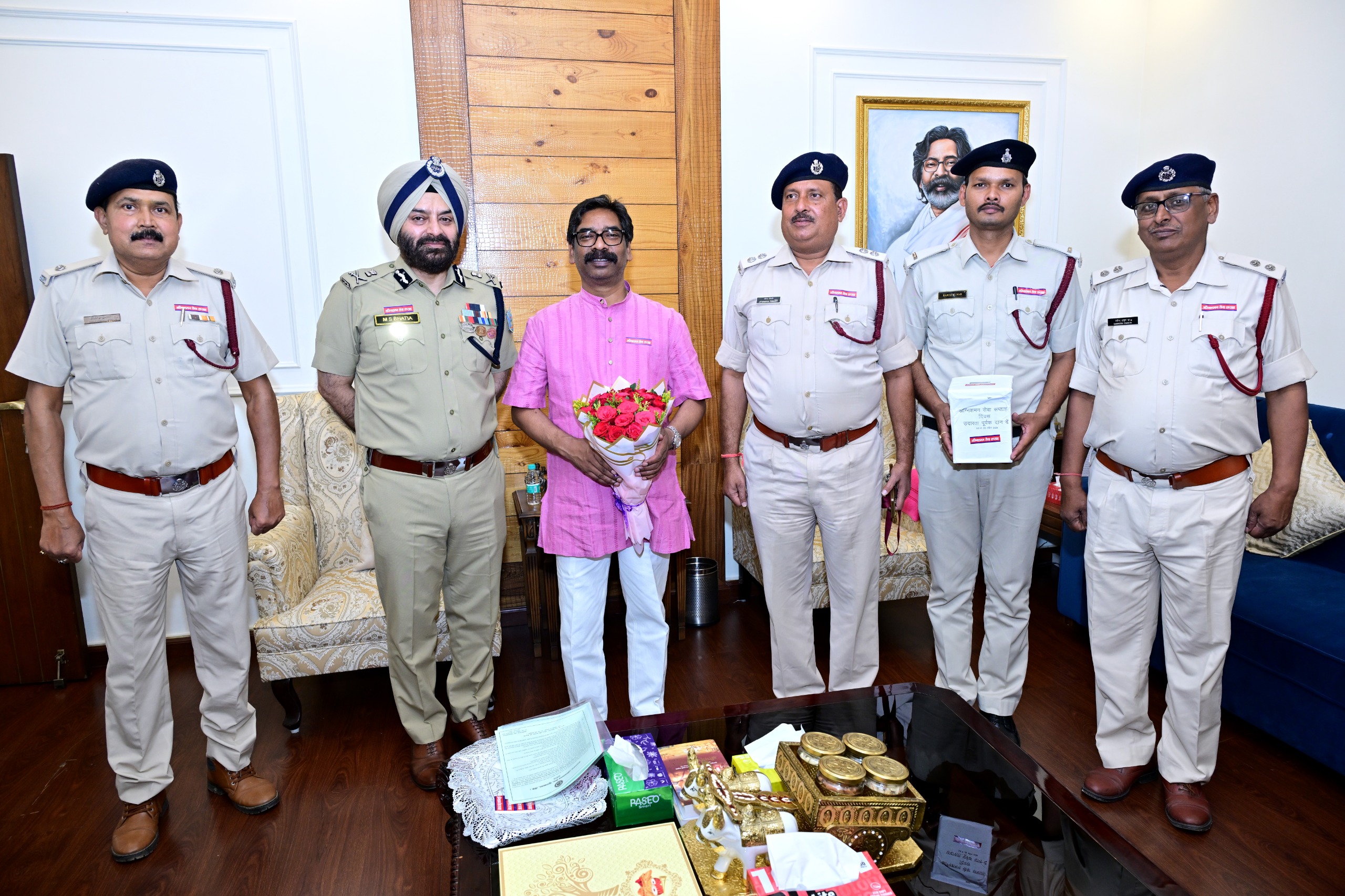 Ranchi : सीएम हेमंत सोरेन ने कहा कि फायर ब्रिगेड के जवान हर हाल में लोगों की मदद के लिए तैयार रहते हैं। आग जैसी खतरनाक स्थिति में भी ये बिना डर के काम करते हैं और कई बार अपनी जान की भी परवाह नहीं करते। उन्होंने कहा कि ऐसे कर्मियों का योगदान बहुत बड़ा है और समाज को हमेशा इन पर गर्व होना चाहिए। मौका था ‘अग्निशमन सेवा सप्ताह’ कार्यक्रम के शुभारंभ का। कार्यक्रम को लेकर गृह रक्षा वाहिनी एवं अग्निशमन सेवा के डीजी एमएस भाटिया ने सीएम हेमंत सोरेन से मुलाकात की। इस दौरान ‘अग्निशमन सेवा सप्ताह’ के मौके पर उन्होंने मुख्यमंत्री को बैज लगाकर सम्मानित किया। सीएम ने भी इस अवसर पर सभी अग्निशमन कर्मियों को शुभकामनाएं दीं और उनके जज्बे को सलाम कर काम की तारीफ की।