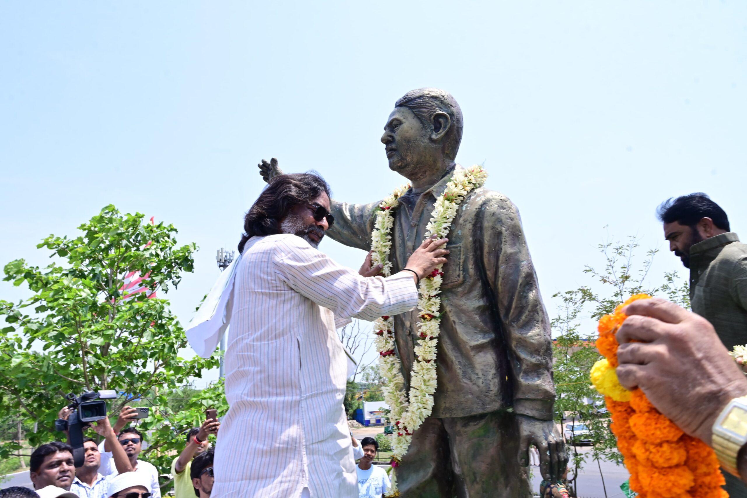 Ranchi : झारखंड आंदोलन के अग्रणी नेता एवं पूर्व विधायक दिवंगत दुर्गा सोरेन को उनकी पुण्यतिथि पर याद किया गया। CM हेमंत सोरेन और उनकी विधायक पत्नी कल्पना सोरेन ने भी उन्हें श्रद्धांजलि दी। CM हेमंत और MLA कल्पना सोरेन आज यानी बुधवार को रांची के नामकुम स्थित लोवाडीह पहुंचे। वहां, उन्होंने दुर्गा सोरेन स्मारक स्थल पर उनकी प्रतिमा पर फूल-माला चढ़ाया और उन्हें नमन किया। CM ने स्व. दुर्गा सोरेन के योगदान को याद करते हुए कहा कि वे झारखंड राज्य निर्माण आंदोलन की एक मजबूत आवाज थे। उनका संघर्ष, विचार और समर्पण आने वाली पीढ़ियों के लिए प्रेरणा स्रोत हैं। इस अवसर पर कई अन्य गणमान्य लोग एवं झारखंड मुक्ति मोर्चा (JMM) के कार्यकर्ता भी उपस्थित रहे। कार्यक्रम में राज्य की सामाजिक और राजनीतिक दिशा में स्व. दुर्गा सोरेन के योगदान को लेकर चर्चा की गई और उनके बताए मार्ग पर चलने का संकल्प लिया गया।