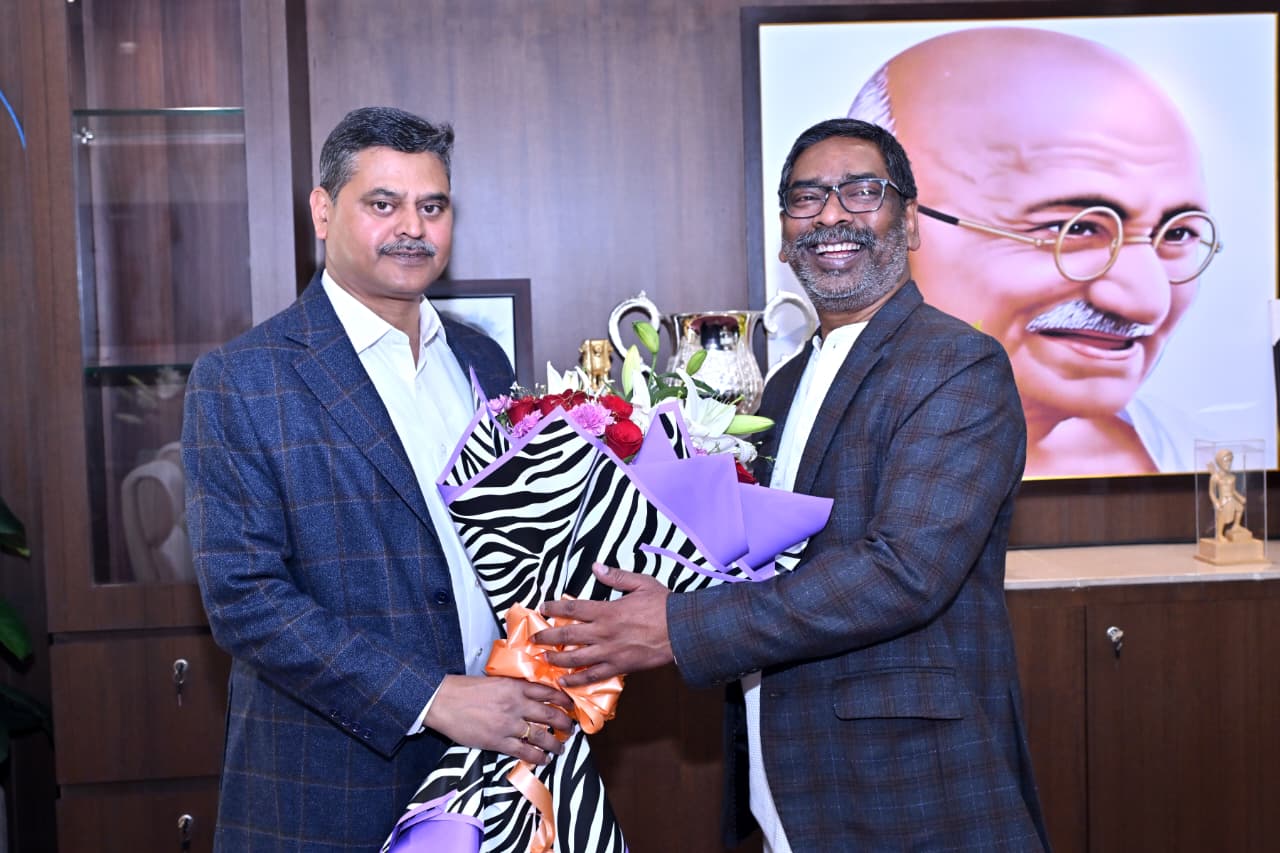 सीएम हेमंत सोरेन का स्वागत करते मुख्य सचिव अविनाश कुमार