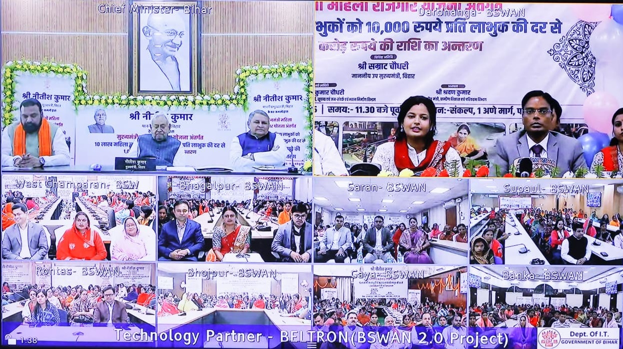 Patna : बिहार के सीएम नीतीश कुमार ने शुक्रवार को मुख्यमंत्री महिला रोजगार योजना के तहत 10 लाख महिलाओं के बैंक खाते में 10-10 हजार रुपये ट्रांसफर किए। इस दौरान उन्होंने कहा कि सरकार उद्यमी महिलाओं को बीच में कभी नहीं छोड़ेगी और उन्हें लगातार मदद प्रदान करती रहेगी। जो महिलाएं अपना रोजगार बढ़ाएंगी, उन्हें दो लाख रुपये तक आर्थिक सहायता दी जाएगी।