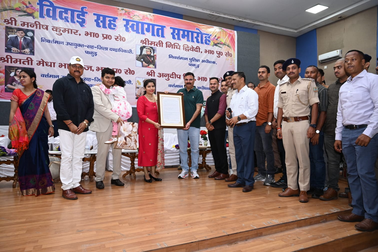 Pakur (Jaydev Kumar) : पाकुड़ के रविन्द्र भवन टाउन हॉल का माहौल उस वक्त अलग ही नजर आया जब जिले के निवर्तमान डीसी मनीष कुमार और निवर्तमान एसपी निधि द्विवेदी के सम्मान में विदाई सह स्वागत समारोह आयोजित हुआ। आमतौर पर सरकारी कार्यक्रमों में औपचारिकता ज्यादा होती है, लेकिन इस कार्यक्रम में भावनाएं भी दिखीं और अपनापन भी। यह सिर्फ दो अधिकारियों का स्थानांतरण नहीं था, बल्कि एक ऐसे कार्यकाल की विदाई थी, जिसे जिले ने करीब से देखा, महसूस किया और जिया।