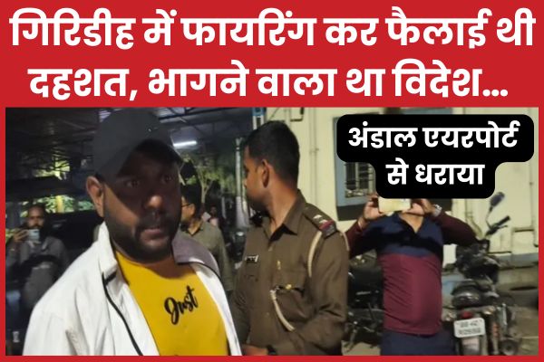 Giridih : गिरिडीह नगर निगम चुनाव के मतदान खत्म होते ही पचंबा थाना क्षेत्र में हुई फायरिंग ने पूरे इलाके में दहशत फैला दी थी। अब पुलिस ने इस सनसनीखेज मामले का मास्टरमाइंड शिवम आजाद को पकड़ लिया है। शिवम आजाद घटना के बाद से फरार था, लेकिन पश्चिम बंगाल के दुर्गापुर अंडाल एयरपोर्ट पर पुलिस ने उसे दबोच लिया।