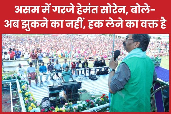 हेमंत सोरेन ने असम के चाय बागानों में काम करने वाले मजदूरों की स्थिति पर भी बात की। उन्होंने कहा कि चाय बागान में काम करने वाले लोग देश की अर्थव्यवस्था को आगे बढ़ाने में बड़ी भूमिका निभाते हैं, लेकिन इसके बावजूद उन्हें आज तक उनका पूरा हक और अधिकार नहीं मिल पाया। उन्होंने कहा कि सालों से सिर्फ वादे और आश्वासन दिए गए, लेकिन जमीन पर कुछ खास नहीं हुआ। उन्होंने मंच से कहा कि झामुमो इस लड़ाई में उनके साथ खड़ी है।