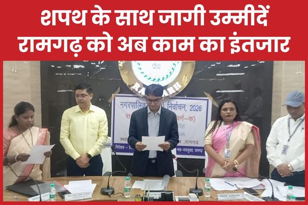 Ramgarh (Dharmendra Pradhan) : मंगलवार का दिन रामगढ़ के लिए सिर्फ एक सरकारी कार्यक्रम नहीं, बल्कि उम्मीदों, भरोसे और बदलाव की एक नई शुरुआत जैसा लगा। नगर परिषद के नवनिर्वाचित अध्यक्ष और वार्ड पार्षदों ने जब शपथ ली, तो वहां मौजूद लोगों की आंखों में सिर्फ औपचारिकता नहीं, बल्कि अपने शहर के बेहतर कल की झलक दिखी।