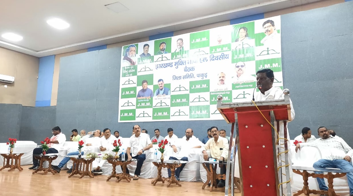 Pakur (Jaydev Kumar) : पाकुड़ जिला मुख्यालय स्थित रविंद्र भवन में शनिवार को झारखंड मुक्ति मोर्चा (झामुमो) की जिला समिति की एक महत्वपूर्ण बैठक आयोजित की गई। बैठक की अध्यक्षता जिलाध्यक्ष अजीजुल इस्लाम ने की। इस दौरान महेशपुर विधायक प्रो. स्टीफन मरांडी और लिट्टीपाड़ा विधायक हेमलाल मुर्मू मुख्य रूप से मौजूद रहे। बैठक में वर्तमान राजनीतिक हालात, संगठन की मजबूती, विशेष गहन पुनरीक्षण (SIR) और आगामी जनगणना जैसे महत्वपूर्ण मुद्दों पर विस्तार से चर्चा की गई। नेताओं ने साफ कहा कि आने वाले समय में संगठन को बूथ स्तर से लेकर जिला स्तर तक और मजबूत करना जरूरी है।