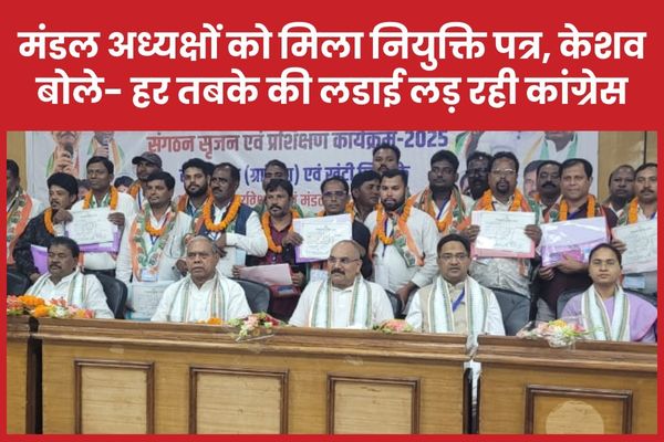 Ranchi : रांची जिला ग्रामीण कांग्रेस कमिटी के तत्वावधान में संगठन सृजन और प्रशिक्षण कार्यक्रम का आयोजन पुराना विधानसभा सभागार में शनिवार को किया गया। कार्यक्रम में रांची ग्रामीण और खूंटी जिला के प्रखंड पर्यवेक्षक, प्रखंड अध्यक्ष एवं नवनियुक्त मंडल अध्यक्ष उपस्थित हुए। कार्यक्रम में रांची जिला ग्रामीण के मंडल अध्यक्षों को नियुक्ति-पत्र दिया गया। इसके बाद प्रखंड और मंडल अध्यक्ष एवं पर्यवेक्षकों को प्रशिक्षण भी दिया गया। रांची जिला ग्रामीण कांग्रेस कमिटी के अध्यक्ष डॉ राकेश किरण महतो की अध्यक्षता की। कार्यक्रम में प्रदेश अध्यक्ष केशव महतो कमलेश ने सभी मंडल अध्यक्षों का स्वागत करते हुए कहा कि यह उम्मीद की जाती है कि आने वाला दिनों में संगठन सृजन के तहत आपको प्रदेश या जिला स्तर से जो भी जिम्मेवारी मिलती है उसकी पूरी ईमानदारी से निर्वहन करेंगे। केशव ने कहा कि कांग्रेस पार्टी हर वर्ग हर तबके की लड़ाई लड़ रही है। इसमें ओबीसी, आदिवासी, दलित और गरीब स्वर्ण वर्ग शामिल हैं। सभी की लड़ाई राहुल गांधी और कांग्रेस पार्टी लगातार सदन से सड़क तक आवाज उठा रहे हैं।