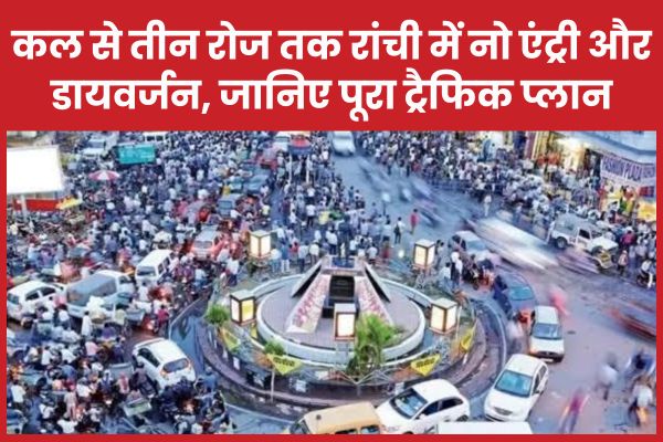 रांची के ट्रैफिक पुलिस अधीक्षक राकेश सिंह ने शनिवार को इस संबंध में आदेश जारी किया। आदेश के अनुसार तीन दिनों तक अलग अलग समय पर शहर के कई हिस्सों में ट्रैफिक प्रतिबंध लागू रहेंगे। जरूरत पड़ने पर अतिरिक्त मार्गों को भी अस्थायी रूप से डायवर्ट किया जा सकता है।