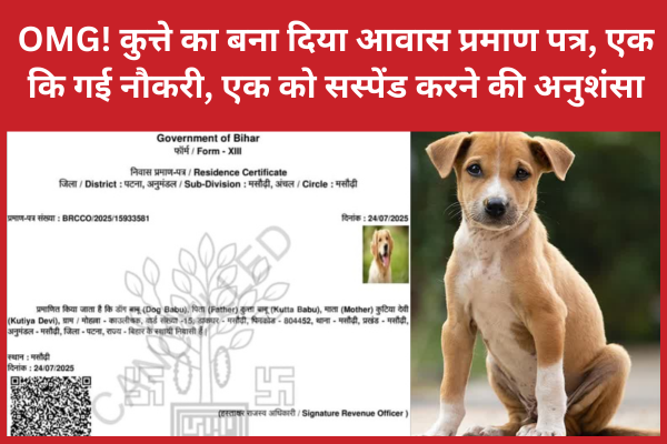 OMG! कुत्ते का बना दिया आवास प्रमाण पत्र, एक की गई नौकरी, एक को सस्पेंड करने की अनुशंसा