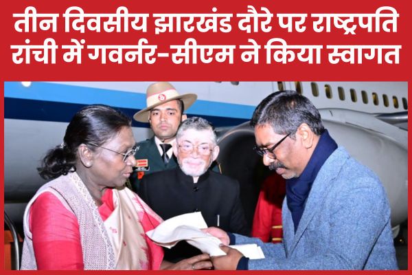 तीन दिवसीय झारखंड दौरे पर राष्ट्रपति, रांची में गवर्नर और सीएम ने किया स्वागत