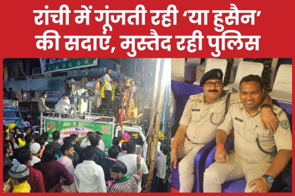 Ranchi : राजधानी रांची में मुहर्रम के मौके पर मातमी जुलूस निकाला गया। दोपहर में जब मेन रोड से जुलूस गुजर रहा था, तभी झमाझम बारिश शुरू हो गई, लेकिन बारिश ने ना तो श्रद्धालुओं की आस्था को रोका और ना ही मातम की परंपरा को थाम सकी। लोग भीगते हुए इमाम हुसैन की शहादत को याद करते रहे। जगह-जगह से पहुंचे ताजिए, निशान और अखाड़ों का स्थानीय लोगों ने गर्मजोशी से स्वागत किया। पूरे रास्ते में ‘या हुसैन’ की सदाएं गूंजती रहीं। शहर के कई हिस्सों में मुस्लिम समाज के लोग बाजे-गाजे के साथ सीनाजनी और जंजीरी मातम करते नजर आए।