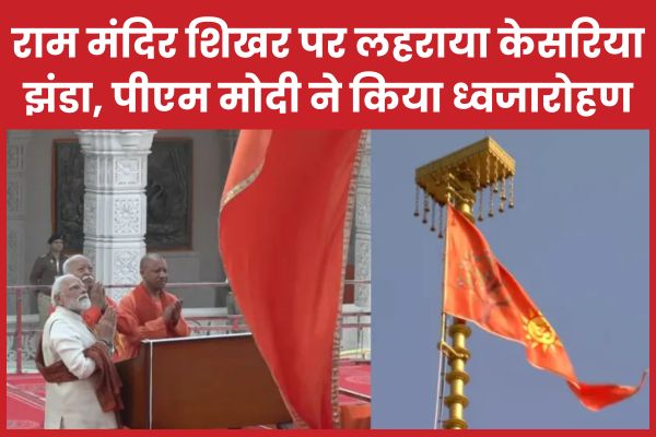 Uttar Pradesh : अयोध्या में ऐतिहासिक क्षण के रूप में प्रधानमंत्री नरेंद्र मोदी ने श्रीराम जन्मभूमि मंदिर के शिखर पर धर्म ध्वजारोहण किया। शुभ मुहूर्त में पीएम मोदी ने बटन दबाकर केसरिया ध्वज फहराया और हाथ जोड़कर उसे नमन किया।