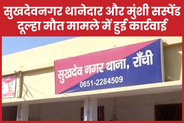 Ranchi : रांची के सुखदेवनगर थानेदार अशोक कुमार और थाने के मुंशी परशुराम को तत्काल प्रभाव से सस्पेंड कर दिया गया है। यह कदम उस घटना के बाद उठाया गया है, जिसमें शादी से पहले दूल्हा ने आत्महत्या कर ली थी और परिवार ने पुलिस पर गंभीर आरोप लगाए थे।