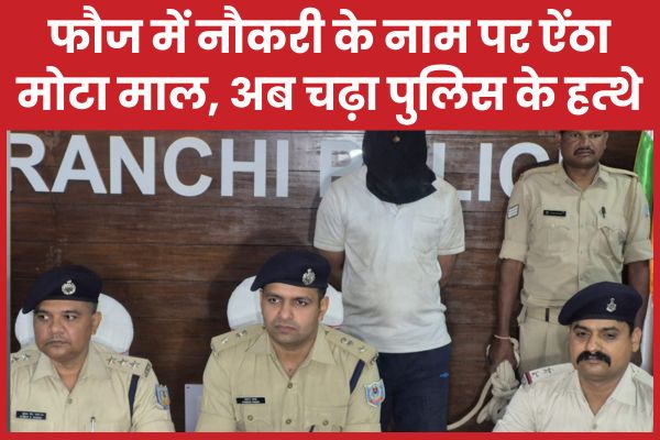 Ranchi : आर्मी और मिलिट्री इंजीनियरिंग सर्विस (MES) में नौकरी दिलाने के नाम पर करीब 70 लाख रुपये की ठगी करने वाले गिरोह का चुटिया थाना पुलिस ने खुलासा किया है। लखनऊ मिलिट्री इंटेलिजेंस से मिली खास सूचना के बाद रांची पुलिस ने मामले को गंभीर मानते हुए तुरंत कार्रवाई की और एक आरोपी को गिरफ्तार कर लिया। गिरफ्तार आरोपी का नाम अरविंद प्रसाद बताया गया। वह मूल रूप से आरा (बिहार) के छोटा सासाराम का रहने वाला है। वर्तमान में चुटिया के वाटर पॉइंट, शारदा कॉलोनी में रह रहा था। आरोपी के पास से कई फर्जी आईडी कार्ड, ज्वाइनिंग लेटर और दूसरे दस्तावेज भी बरामद किए गए हैं। इस मामले में चुटिया थाना कांड संख्या 45/2026 दिनांक 10 अप्रैल 2026 को दर्ज किया गया है। पुलिस ने बताया कि इस केस में कुल 7 लोगों को नामजद किया गया है।