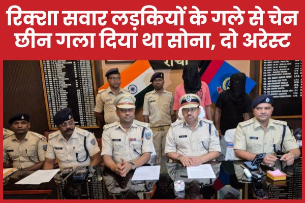 Ranchi : रांची के लोअर बाजार थाना पुलिस ने सोने की चेन छिनतई के दो आरोपियों को गिरफ्तार किया है। गिरफ्तार आरोपितों में मो नौशाद और चोरी का सोना खरीदने वाले रवि कुमार चौरसिया शामिल है। इनके पास से घटना में प्रयुक्त स्कूटी और गलाया हुआ 7.128 ग्राम सोना बरामद किया गया है। एसएसपी चंदन कुमार सिन्हा ने बताया कि लोअर बाजार थाना अर्न्तगत बहू बाजार-बरनाबास अस्पताल के सामने से चेन छिनतई की घटना हुई थी। रिक्शा पर सवार दो युवती जा रही थी। पीछे से एक स्कूटी पर सवार तीन अपराधी ने रिक्शा पर सवार एक युवती से सोने की चेन झपट लिया और भाग गए।