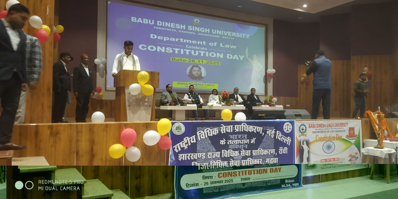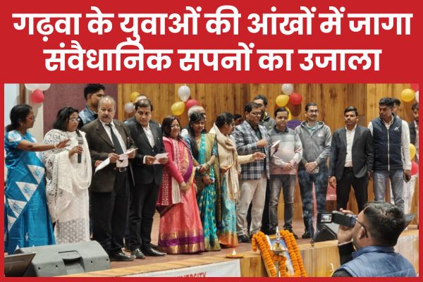 Garhwa (Nityanand Dubey) : बाबू दिनेश सिंह विश्वविद्यालय के विधि विभाग में बुधवार को कुछ अलग ही माहौल था। छात्र जल्दी-जल्दी कदम बढ़ा रहे थे, जैसे उन्हें पता हो कि आज सिर्फ कार्यक्रम नहीं, अनुभव मिलने वाला है। 76वें संविधान दिवस पर आयोजित इस संगोष्ठी ने कई युवा दिलों में भविष्य की एक नई तस्वीर उकेर दी।