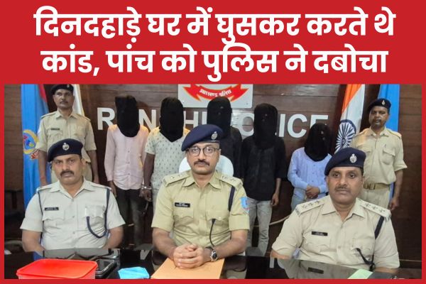 Ranchi : राजधानी के रातू थाना क्षेत्र स्थित सिमलिया चालाटोली में दिनदहाड़े हुई चोरी की घटना का पुलिस ने खुलासा कर लिया है। मामले में पुलिस ने पांच संदेही गुनहगारों को धर दबोचा है। इनके नाम पवन कुमार (30), कौशल सिंह (29), राजा साव (24), सुनील कुमार राय उर्फ अन्नु यादव (35) और संतोष कुमार सोनी (35) बताये गये। इन लोगों के पास से पुलिस ने चोरी में इस्तेमाल सलाई रिंच, पेचकस और एक स्कूटी बरामद किया है। साथ ही चोरी किए गए सामान भी जब्त किए हैं। इस बात की जानकारी रांची के रुरल SP प्रवीण पुष्कर ने मीडिया के साथ साझा की।