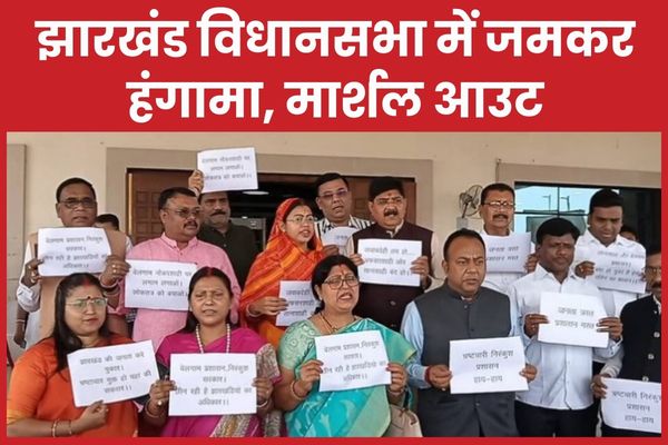 Ranchi : झारखंड विधानसभा के बजट सत्र के दसवें दिन मंगलवार को सदन की शुरुआत ही हंगामे के साथ हुई। जैसे ही कार्यवाही शुरू हुई, भारतीय जनता पार्टी के विधायक हाथों में पोस्टर लेकर वेल में पहुंच गए। उन्होंने राज्य में बढ़ते भ्रष्टाचार और बिगड़ती कानून व्यवस्था को लेकर सरकार के खिलाफ जोरदार नारेबाजी की। कुछ देर के लिए सदन का माहौल पूरी तरह गर्म हो गया और सत्ता पक्ष और विपक्ष के सदस्य आमने सामने नजर आए।