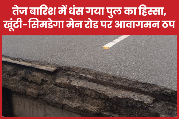 तेज बारिश में धंस गया पुल का हिस्सा, खूंटी-सिमडेगा मेन रोड पर आवागमन ठप