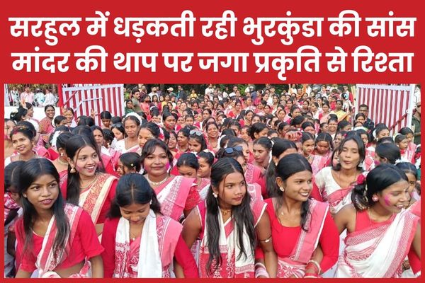 Ramgarh (Dharmendra Pradhan) : भुरकुंडा की सुबह उस दिन कुछ अलग थी। हवा में हल्की सी ठंडक थी, पेड़ों की पत्तियां जैसे खुद ही उत्सव का हिस्सा बन गई हों। गांव-शहर की सरहद मिट गई थी और हर गली, हर रास्ता एक ही दिशा में जा रहा था, सरना स्थल की ओर। मौका था सरहुल का, प्रकृति को धन्यवाद कहने का दिन।