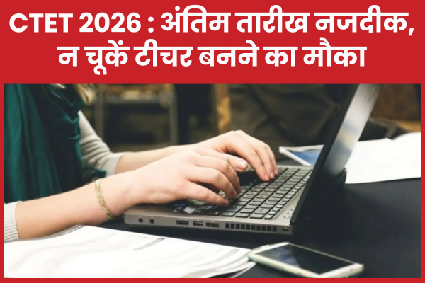 News Samvad : शिक्षक बनने का सपना देख रहे अभ्यर्थियों के लिए अहम खबर है। केंद्रीय माध्यमिक शिक्षा बोर्ड (CBSE) द्वारा आयोजित केंद्रीय शिक्षक पात्रता परीक्षा (CTET) फरवरी 2026 के लिए आवेदन की अंतिम तारीख नजदीक आ गई है। जिन उम्मीदवारों ने अभी तक आवेदन नहीं किया है, वे 18 दिसंबर 2025 तक आधिकारिक वेबसाइट पर जाकर आवेदन कर सकते हैं। इसके बाद आवेदन का कोई अवसर नहीं दिया जाएगा।